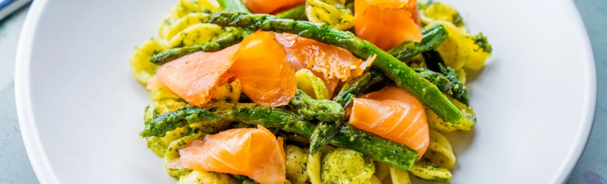 Homemade Orecchiette, Green Asparagus, Tarragon Pesto, Artisan Smoked Trout